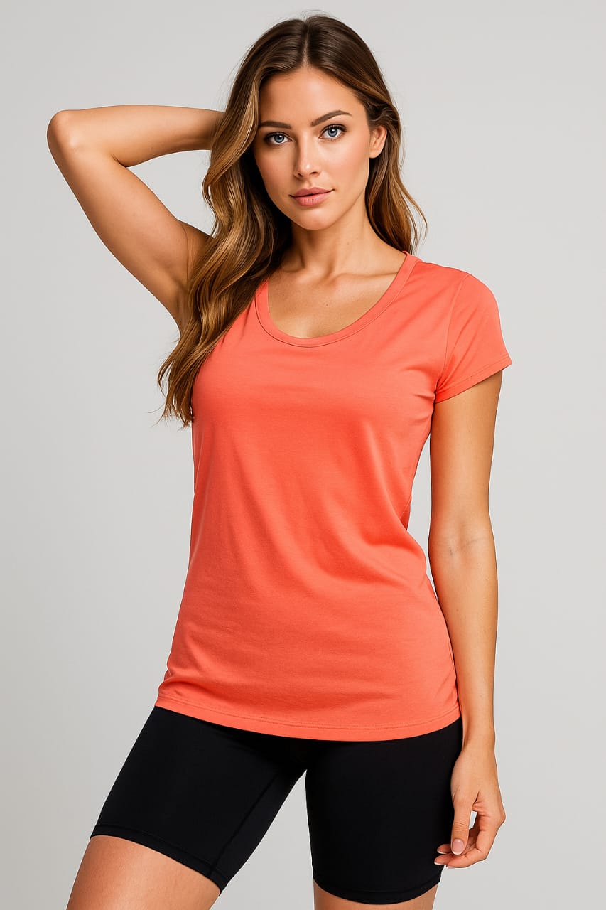 Women’s sport-Tek T-shirt shown in the image is made of challis woven fabric