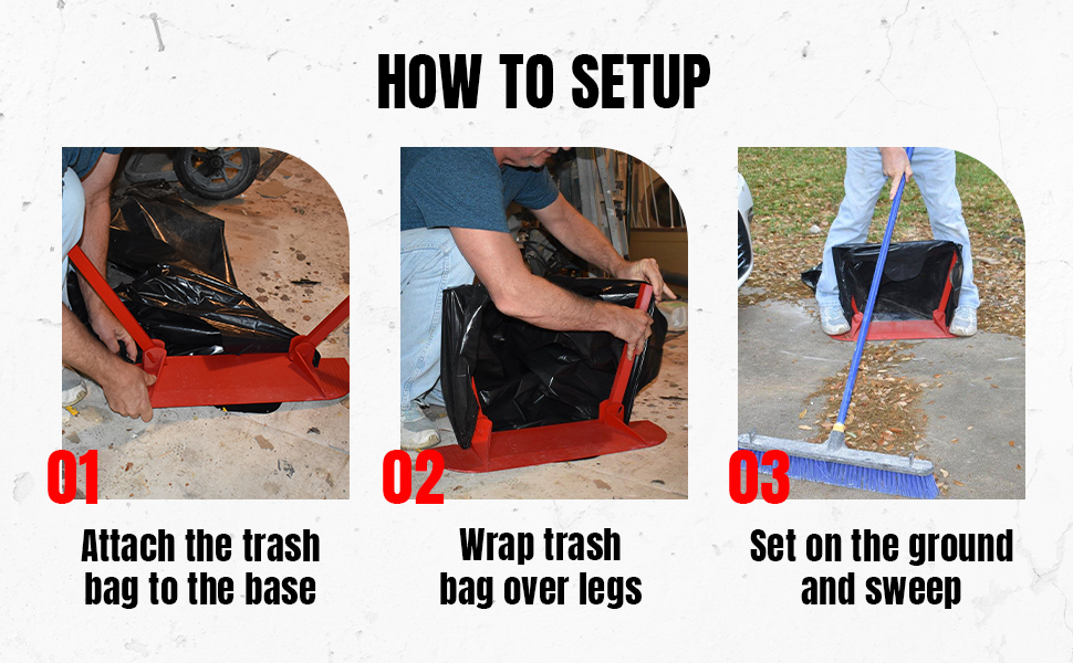 SweepReLeaf is a tool designed to hold a trash bag open so that you can sweep debris straight into the trash bag. It has a base that acts like a dustpan so debris goes into the bag easily. Without SweepReleaf, you have to hold a bag open with one hand while bending over and then sweeping with the other hand. Not easy! Or it takes a second person to hold the bag open for you to sweep into it, and then it’s still difficult to get the debris into the bag. Once you try SweepReLeaf, you will be a fan!